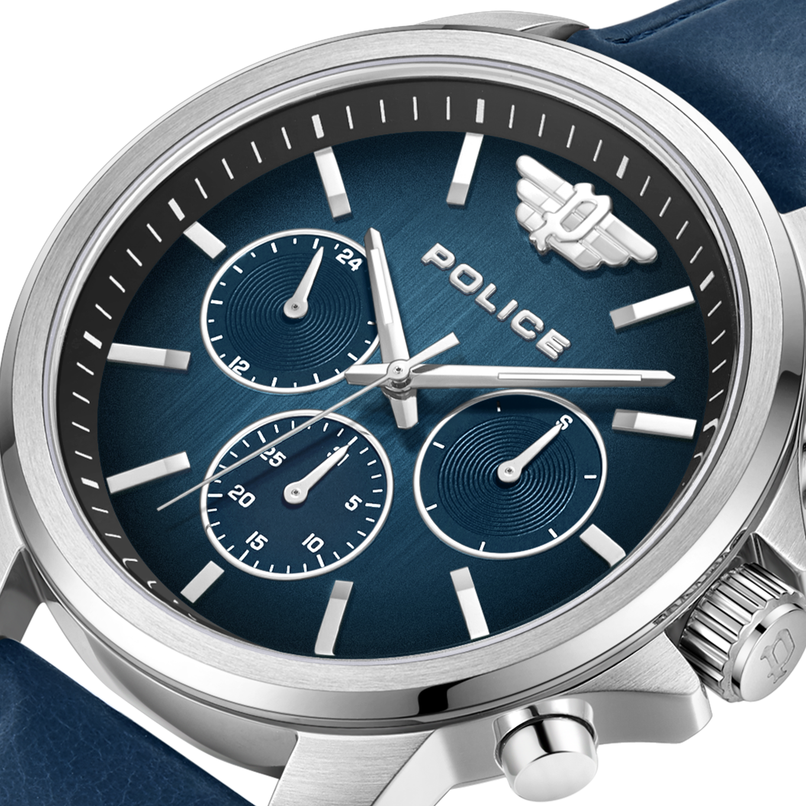 Police Pewjf0006301 Blue Gents Mensor Leather Strap